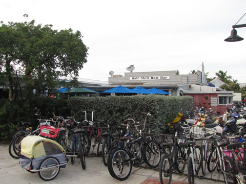 | As we left, we took a couple of pictures that reminded us of the views of Key West. LOTS and LOTS of scooters not to mention the Half Shell Raw Bar and then Turtle Krawls. | ![]() |