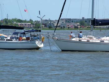 May 29 - I don't have more pictures of Beaufort, NC because I just didn't see one that you probably haven't seen before. The town is extremely accessible for cruisers with multiple free dinghy docks along with a place to dump trash. Overall, it is a great place to stop with a great view of the water and many boats. Of course, along the water are multiple restaurants with reasonable priced lunches. However, that isn't the reason we stopped here. We stopped because of my bottom paint which I believed wasn't working even though we bought some of if not the best from Interlux. I will go back in time. I had the bottom of the boat faired, coated with Interlux 2000 and then based on a recommendation from the yard, painted with Interlux Ultra before we left. All of this was completed in August of 2006. I started getting in the water with my wetsuit on and cleaning the hull in Pensacola only to find that quickly I would notice growth on the bottom which didn't seem right by the time we reached Tarpon Springs. I was starting to get into the water on a regular basis to clean the bottom when others didn't have to. Of course, I was complaining about it too. This continued while we were in Key West when I was having to get into the water to scrape the bottom every two to three weeks. If I didn't, I would have barnacles and junk growing on the bottom. To solve the problem, I just kept cleaning. As we were moving up the east coast, I had a fellow Gemini owner email me as to why I had to clean the bottom so much. I emailed him back with my story and he said the people he knew that used this paint didn't have the problem and it sounded like something was wrong. I then decided that I would email Interlux. I have to tell you that I told them I didn't expect a reply but boy was I WRONG. I immediately got a reply from their technical support person and after a couple of emails where I clarified the problem I was having, he connected me with one of their representatives. Of course, they don't have a rep in every town so after a number of emails back and forth we linked up in Beaufort, NC. For those that read my website, you know that I truly appreciate good customer service and I say so on the site. This was one of those experiences. Today, I met the rep and he came out to our boat to view the paint in person. I had sent him a high resolution picture I took in Charleston after I experienced a growth in 5 days but he needs to see the problem himself. After a good amount of time with him hanging over the side of my dinghy pulling stuff off the bottom he agreed we had a problem. He asked a number of clarifying questions but it came back to the point that, although unexplained and extremely unusual, we had a problem. He then made an offer which was appropriate since it has been almost a year since I had the paint applied, and one we could both agree to. No, they aren't paying for the entire job and I don't think they should. Instead we reached an appropriate compromise. While he was here, he went over all the types of water we will encounter over the next two years with our boat, he also went through the theories of bottom paint and came up with a recommendation for our bottom. The real "bottom" line is, Interlux has demonstrated excellent customer service and I appreciate their support. We still don't know what really caused the problem but we have a solution and they have a satisfied customer. Thank you Interlux!. Today, once we finished taking the rep back to the dock, Deb suggested that we stay another day to get the laundry finished and just kick back a bit. Being the planner that I am, I said SURE. By the way, that is for all of those people who knew me in my work life when I kept all schedules and coming at or under budget. We will be off tomorrow and should be in Elizabeth City in three or four days. Of course that may change since another Gemini owner checked our website and just emailed us inviting us to his dock since we are fairly close to him. I promise more pictures on the next update and if you need your bottom painted, consider Interlux. |