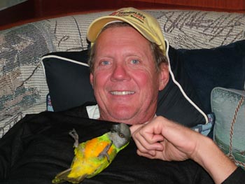 Tonight, Monday, after an 11 hour day moving on the water we cooked some pork steaks on the grill, made a great salad with my own dressing and hung out. As we came down the river for Cape Fear, drives you crazy doesn't it, a place called Cape fear, anyway, (commas are killing me here) the wind was with us and the current was also with us so we were making up to 10.2 knots. We ended up with 60 nautical mile day which is really good. So we just layed back for a glass of wine and as you can see to the right, Jimmy Buffett was hanging out too. He loves attention and really likes it when we stop and I get to pay attention to him. The real news is that there is a tropical storm coming at us. The name is Nole and by the time you read this, it will probably be all over. We are heading for a long day again tomorrow and will be anchored in the Great Waccamaw River. If we find out tomorrow that the storm is really coming at us, we can go another 5 miles at least up the river and set up our anchorage of three anchors and wait it out . I actually am not afraid of what this brings because we are prepared for the possibility. Adventure is in our blood, or should I say my blood, and we have put out calls to people to watch the weather channel and let us know where the storm is heading. Thanks to all that will be letting us know. I don't know what they did without cell phones but I'm happy that I will have a short wave receiver in about 3 weeks so I can hear everything there is about the weather. |