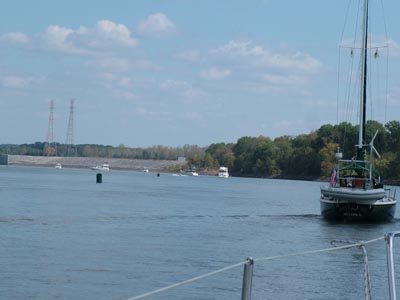 FREEDOM RETURNS TO SEA - Once again, on schedule, we left to get back to cruising. Behind us was Green Turtle Bay and in front of us was the Tenn-Tom along with the Ocean. We are ready and we are traveling south with our friends and as it happens, the Grand Marshals of the parade. Bill and Bette. You can see their boat in front of us. As we went through the cannel connecting Barkley and Kentucky Lake, the colors of the leaves changing just happened to tell us this was going to be a good trip. At the same time, there was a little knot in my stomach just to remind me to stay aware on the trip. It's been three months since we were really moving so if something was going to break, it would be today. When we left in 2006 we immediately encountered cold weather. It appears this time we just might not have as cold of an adventure. Now you might be thinking, what about that enclosure you just spent three weeks sewing? I say, KEEP IT STOWED! Someday it will come out and save the day. Hopefully that day will be next year or longer but who knows. |