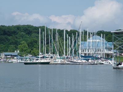 And we fit under it just fine. However we always look up. Right now we are at Grand Harbor Marina and want to send a special thank-you to to Chip Lucas who is the site manager. We always stop here because they are so nice, the restrooms are very nice, great laundry, well stocked ships store, reasonable priced fuel with Boat-US discount, and of course a fairly new courtesy van so you can reprovision and go out to lunch. They don't worry too much about time on the van as long as other people aren't coming and going as transients. Overall, they do a great job and if you are passing this way, you should try the marina out. I don't think you will be disappointed! Tomorrow morning we are taking off about 7 am and hoping our only lock going down will get us through promptly. So far, we have had no waiting on the locks so we are overdue for a setback. Last time we had to wait 3 hours and threw out the anchor. Hopefully we will get through and make good advantage of the current heading downstream to get a good start on our way back to Green Turtle Bay. We will update again when we get back to Kentucky Lake and then I have to figure out how many times we will update each week/month. I'm not sure about what I want to morph the site into at this point. I'm definitely not posting that I went to work at 8 and came home at 6 each day. Perhaps I will post about the different boats we are listing and what I'm learning about each one. A better idea is for you to let me know what you might want even it is just to be quite for awhile. Regardless, we will be back at it again this fall. Of course it just so happens that all of the wi-fi is down so for the time being, I can't update the site. Hopefully it will be back up before we leave in the morning. |