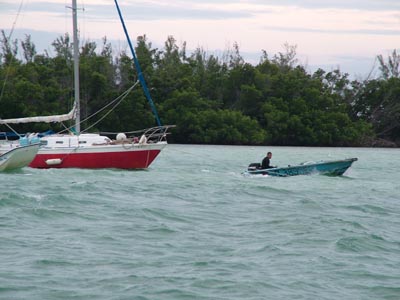 It wasn't too much later when Mike and Liz arrived and this was the first time they've seen Larry and Joyce since the Bahamas last year. I know I've talked about it before but our new home town called cruising city is really a very small town. In almost any anchorage we now have the opportunity to see a boat we've seen in our travels or to meet people that we have traveled with. Each time it is the same thing. Everyone is happy to see each other. We really haven't met an unhappy cruiser yet regardless of the boat they are on or their financial condition. There is just something to being out here on the water and experiencing what life has to offer. Even the storm don't seem to matter because you know the beautiful weather is just around the corner. Sorry friends up north, the weather here is wonderful with 75-78 degree days. We have our winter flip-flops on and are having a good time. |