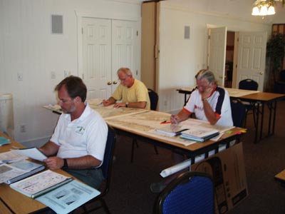 For the last 10 days I have been consumed with the Captain's class. Consumed is perhaps an understatement here! I am the kind of person that must accomplish my objective so when I start a project, I get consumed by it until I can see the end. I don't know if a person is what you were raised to do, or, you are what you were genetically created for, or you become the person you want to be, or, or, or, or....... For me it is very simple. When I accept a challenge, I typically figure out a way to accomplish it. Perhaps we are all a combination of all of the choices above and as we get older we either adapt to new challenges or we get stuck in doing what we've always done. It may also be true that we learn what we can do so we only accept the challenges that we really know we can accomplish. I don't know the answers to these type of questions but I do know that I enjoy challenges and learning. I am happy that I took this course because it stretched me and helped me achieve a goal that I didn't know I could accomplish. Captain's class is really a name that us civilians call the class which has been approved by the Coast Guard to prepare people for a certain license. Everyone who runs a boat, licensed or not, is actually Captain of that vessel. However, to charge for passengers you must be licensed by the U.S. Coast Guard and that means passing a test or tests from the Coast Guard to demonstrate your knowledge in certain areas. The first series of tests people take is for the Operator of an Uninspected Passenger Vessel - OUPV. For this licence you must take the tests for Rules of the Road, Deck General and Safety, Navigation General, and Chart Navigation. These break down as follows. Rules of the Road - These include the rules that most of you know such as crossing and overtaking rules. However, it also includes every light color and shape which you will see, the day shapes for vessels, horn signals, and restricted visibility signals for both international and inland waters. This is a memory test and you must pass with at least a 90%. The next test is Deck General and Safety which includes everything from knots to names and uses of equipment on the vessel along with fire fighting techniques. The third test is Navigation General and you need to know the meanings of all of the different buoys you might see out there such as a safe water mark, a preferred channel marker or why in the intercoastal waterway they put those yellow triangles or squares on a marker plus more. Finally you get to Chart Navigation and that test is plotting and interpreting the plots for vessel location, speed, current speed and direction so you are able to choose a course while compensating for the set and drift of current. The tests are created from a test database from the Coast Guard of 14,000 questions. Since there is so much to learn, the reality is that you typically aren't successful if you try to learn all of the information on your own and go to the Coast Guard and take the tests. Instead, you want to find an approved Coast Guard program and they will teach you the items that you must know to have the best chance at passing the test. Since people must have a minimum of 360 days on the water to qualify for the OUPV or as most call it, the "6 pack license," there is already a self screening process before people start the class. The people who were in my class all had the "sea time" required and in most of our cases, much more. However, that is just the beginning. The memorization required is more than I ever took on while in College so if you decide to take the class, you better be ready to put in the hours of study. You might pass by putting in only part of the time but when you look at the big picture, why would you just want to pass when you have other people's lives at stake. The reality is, even though everyone in the class really did want the license and almost everyone put in the required time, we did have one person who didn't pass. They have to re-test after studying for the next week. I hope he passes because I know he will be a good captain! Doesn't everyone look like they are taking this seriously? Trust me, they are. They have come from many different paths of life and they simply want to do their best to run a boat and do it to their best of their ability. |