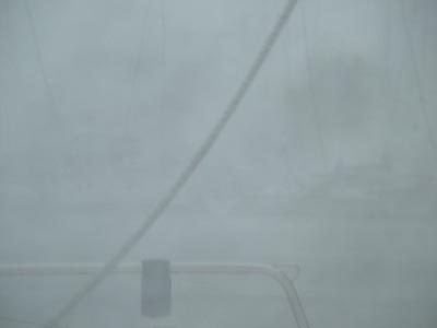June 18 - Tuesday we had a storm move through at noon. I think you can get the idea from the pictures to the right and below. I had gone back to the boat for lunch just in time for the show. Truthfully, I was thinking that one of these bimini's was going to be destroyed or blown into someone else's boat. In the end, it didn't happen. According to the TV station in Paducah, there were winds in our area at 50+ mph. Deb and I are very fortunate with our boat location. We are protected from the north by the Yacht Club and the embankment which is only 30 yards away. It definitely gave us a good view of the harbor until the whiteout occurred with all of the rain. At one point there were whitecaps in the harbor which is actually difficult to accomplish given the wind direction. |