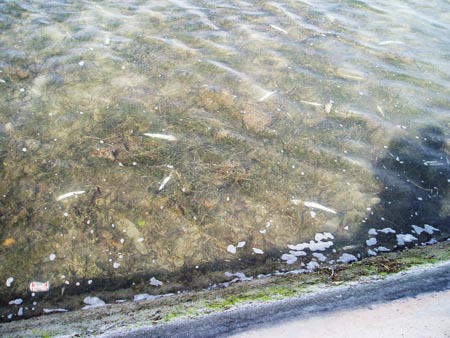 Jan 17 - I know you've been reading about how unseasonably cold it was down here in Key West not so unlike the rest of the country. The issue for people is that many of the houses were built without heaters. They run on electric heaters has come and gone with many people getting them and even more who didn't. We even had deaths of people who tried to use a BBQ grill in their house to heat with. Of course the carbon monoxide was the culprit in that death. The other thing dying is fish. Evidently, some of the fish in the keys depend on a chemical process to process the oxygen and when the water temperature gets below a certain level, the process shuts off. As a result fish were dying right and left. You can see some of them dead in the picture to the right. On that bike ride, I saw almost a thousand dead in Garrison Bight. The other thing I got a picture of is one of the houseboats that sank which was anchored out. And of course there is the boat that appears to be overloaded with birds. I actually met the guy who owns this boat and he pumped it out. I only saw him at the dinghy dock so don't know where he is located. The engine on the back is a Seagull and he took it off and is using it on a Walker Bay dinghy. That is how I met him striking up a conversation about the engine. Evidently the oil is mixed 10 parts gas to 1 part oil. I'll bet that produces a smoke screen. |