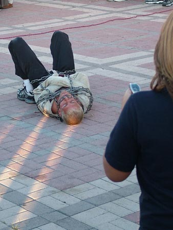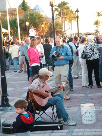 Once we saw the flame juggling then it was time to go eat. Deb on the other hand had struck up a conversation with a swami who was going to give her a "reading." I let her know that we were heading down duval to find something to eat and she should call me when she was done. As it ended up, the traditional tourist places were too loud for us to talk so we ended up at Fogerty's which is a great outside eating area with great food. We got a table for six and ultimately Deb joined us for dinner. We had a great dinner and conversation starting to catch up. Today, they are off on more Key West adventure and we will meet up with them for happy hour before they leave on the shuttle heading back to Ft. Myers. We had a great afternoon and evening. I hope you enjoy the pictures and this is a "don't miss" event in Key West! |