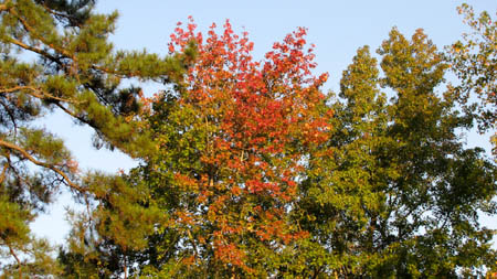 We were up early on Sunday and misty fog was wondering about on top of the water. After checking in with the other boaters, two of us were off for the first opening at the end of the Dismal Swamp. It was only 4 miles to the bridge and the only question in our minds was if we would have to wait for them to lock some other boaters up. As it turned out, we didn't so we got an early bridge opening and then lock. It didn't matter since we weren't in a hurry anyway. We did see some trees changing but I think we are about a week or two early for the best colors. |