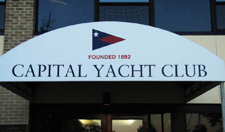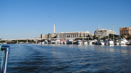 As you've seen, the Capital Yacht Club has historic roots and I saw this framed note and picture on the walls. It was pretty interesting to see what appeared to be the first declaration of the Club. To the lower left you can see the docks and the Washington Monument as we pulled away on Saturday morning. |