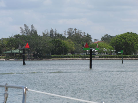 As you can see in the picture to the right, they don't even have their jib up. It's more a pictorial thing than a real sailing boat now. We arrived yesterday afternoon after heading east for 8 hours. The seas were directly on our beam and were 3-5 feet all morning before starting to fall to 2-4's. On the beam, means the waves were hitting us on our side which meant the boat was rocking from our right to left about every 3-4 seconds. Let's just call it uncomfortable. Nothing the boat had problems with but it's just a bit hard on the people in the boat. I didn't put a board down because the last time I had these conditions I broke a centerboard bolt 50 miles offshore. Yes, I have new bolts and they probably wouldn't have broke but why put the boat under such stress. We arrived at Marathon and their radio wasn't working. Something about the volume being turned down until I came by dinghy to check in. We picked up all our bathroom cards and dinghy pass. Then back to the boat. We made an early dinner out of it over at Docksides and headed home. It looks like we made a good decision about stopping just because we don't like getting beat up more than we have. We could have made it home but if anything went wrong then we would have a pretty bad experience as a result. |